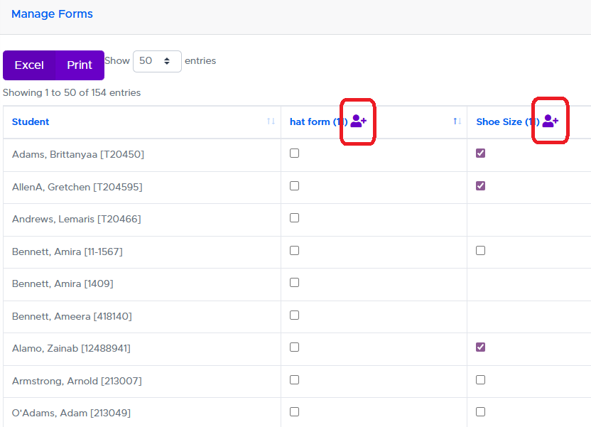 - Manual Check-Off – Use the checkboxes next to each student’s name to mark forms as received.