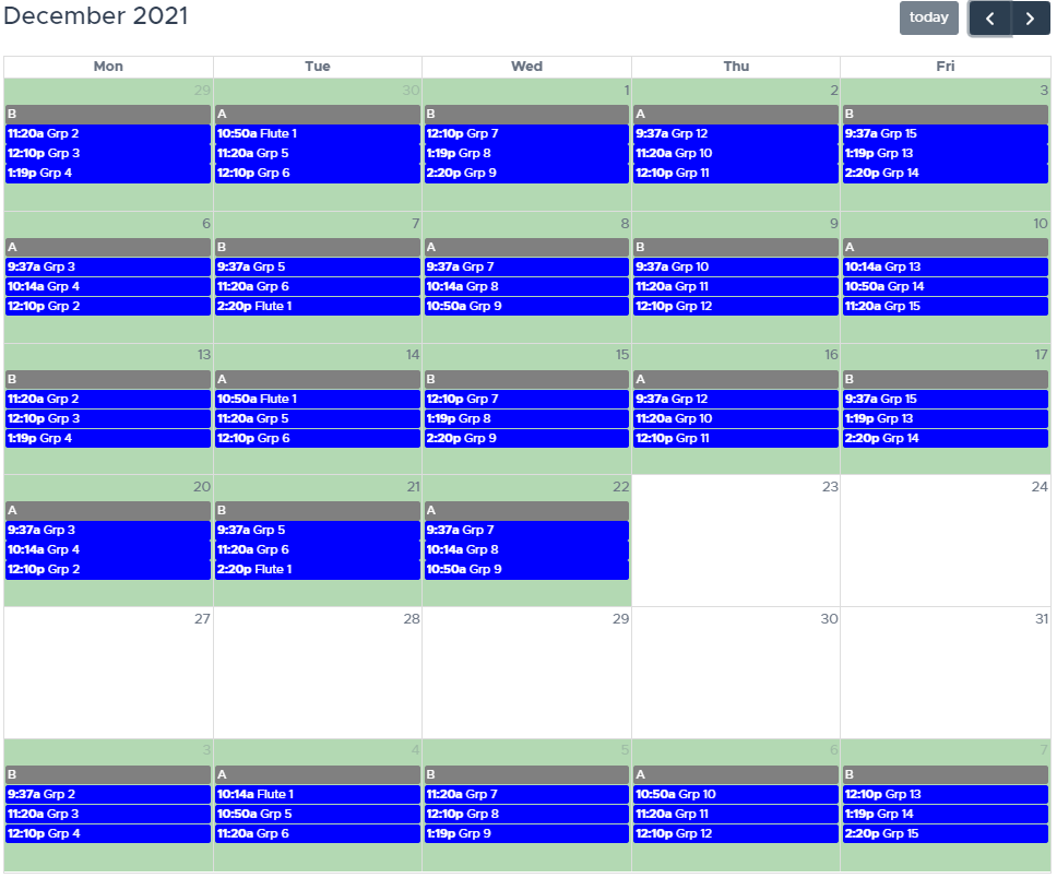This page allows you to deselect the days that you will not be teaching. Days that are Green will have lessons scheduled. Days that are White will not have lessons scheduled. To change the color of a day, simply Click it!