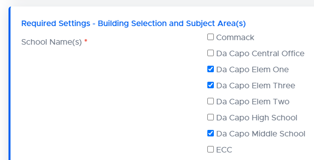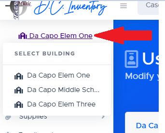 Teachers who use Da Capo Inventory can manage the inventory and enrollment of instruments and students in all of the buildings in which they teach. To select buildings, visit the ‘User Profile’ page and check off the buildings that you would like to access.