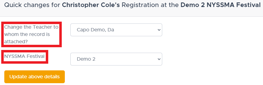 - If the parent selected the wrong State Festival, that data element can be updated here.