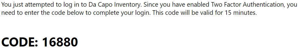 - Moving forward, each time you log in to Da Capo Inventory, you will need access to your authenticator app to obtain a login code.