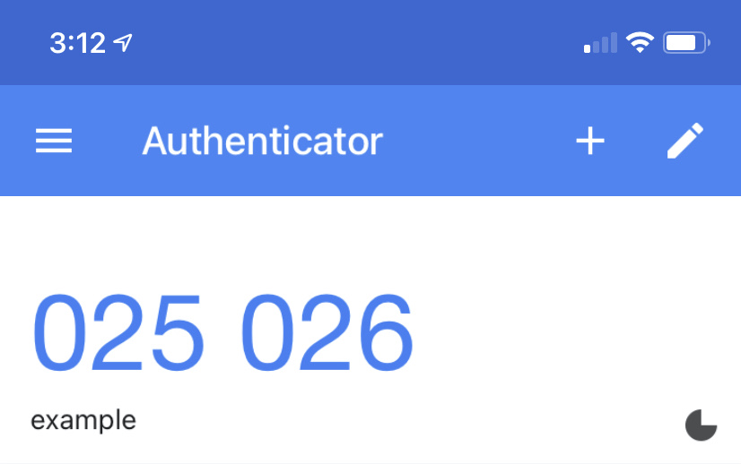 - Click a button in the app to add a new authentication code. In the example below, one would click the “Plus” button.